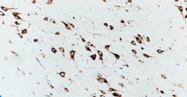 人大脑,正常成人大脑皮质:免疫组化染色生长相关磷蛋白43(GAP43)采用NCL–GAP43。图示神经元与树突顶端强染色。石蜡切片。